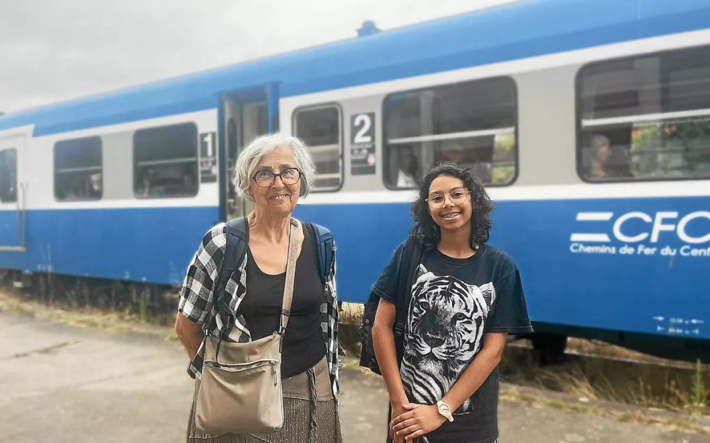 Roxane et Radojca, sa grand-mère, ont voyagé à bord du Napoléon Express d’Auray à Pontivy, elles ont adoré ! (Le Télégramme/Charlotte Le Balch)