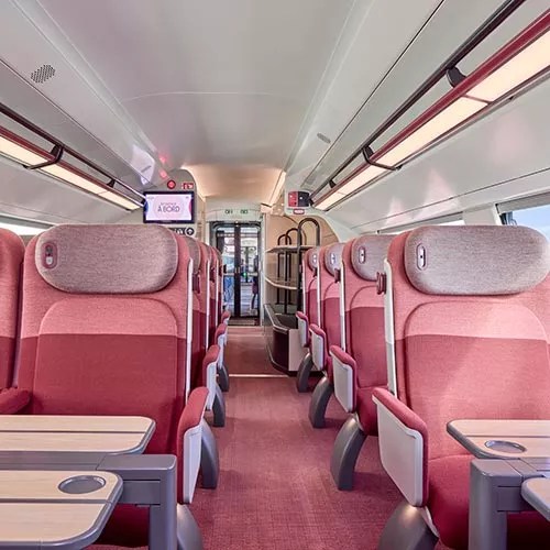Pour les voyageurs : ce qui change, plus d’espace, 10 % de largeur utile en plus à l’intérieur. Confort amélioré, nouveaux sièges, prises USB-C, espaces connectés.