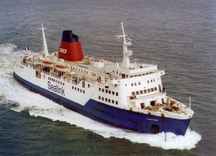 Le ferry Chartres a été construit en 1974 par les chantiers Dubigeon, à Nantes pour la SNCF, dans le cadre du partenariat Sealink/SNCF. C’était un train-ferry / car-ferry (capacité pour véhicules, passagers, et wagons ferroviaires) conçu pour fonctionner sur plusieurs voies, selon les besoins.