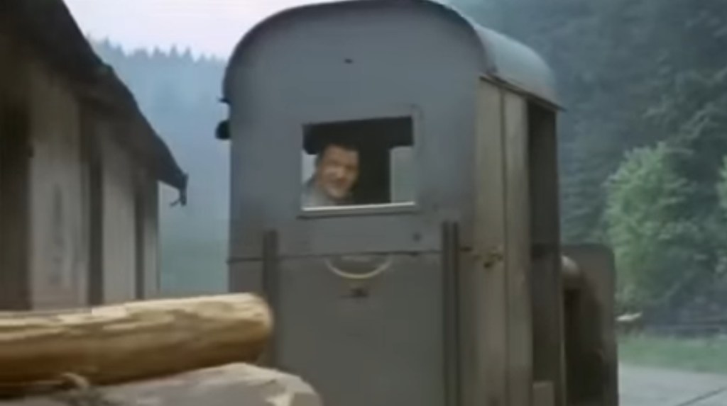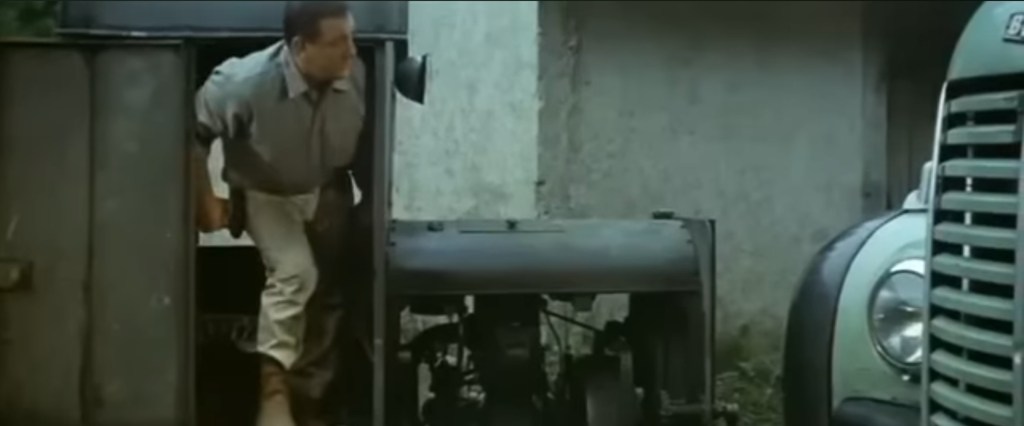 La réplique est lancée par Lino Ventura avec l’autorité qui le caractérise. Il accompagne le geste à la parole en donnant deux coups du plat de la main sur la tôle du locotracteur vrombissant où il est juché.