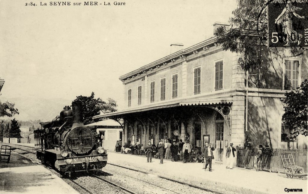 1859: Mise en service de la station (gare) de La Seyne par la Compagnie des chemins de fer de Paris à Lyon et à la Méditerranée (PLM), lors de l’ouverture de la section Aubagne↔Toulon de la ligne Marseille-Vintimille.