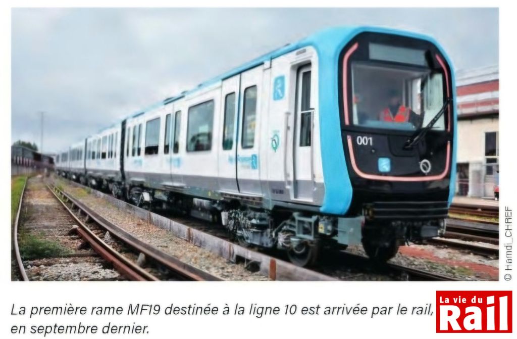 La première rame MF19 destinée à la ligne 10 du métro parisien a été mise en service le 16 octobre, soit 15 jours avant la date initialement prévue par la RATP, IDFM et Alstom. Pour ses promoteurs, cela démontre le bon déroulement du projet, l’entente entre les parties prenantes, et un respect du calendrier qui n’est pas si courant dans le ferroviaire, a commenté Valérie Pécresse, la présidente d’IDFM, lors dun point de presse, à l’occasion de la réception, le 26 septembre, de la quatrième rame MF19 à l’atelier de maintenance des infrastructures situé Porte de la Villette, dans le XIXe arrondissement de Paris.