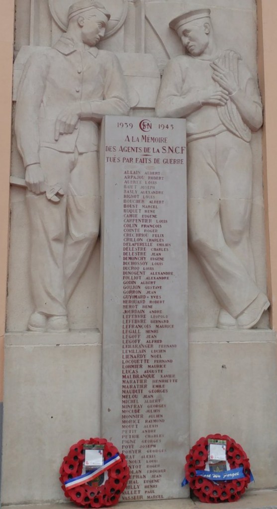 La stèle à la mémoire des agents tués pendant la seconde guerre mondiale, dans le hall de la gare.