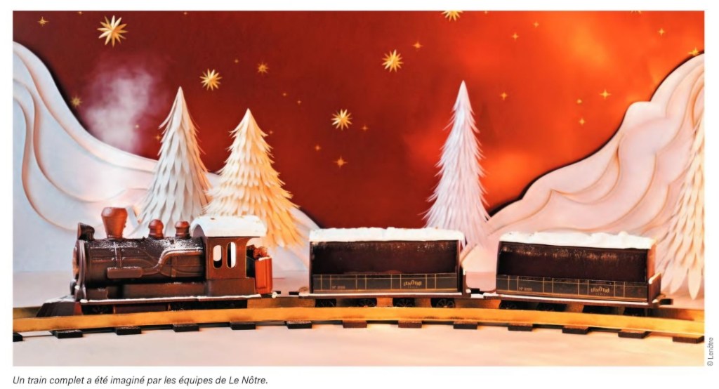 Dessert classique pendant les fetes, la bûche ne se limite plus à une imitation d’un bout de bois. Aujourd’hui, les pâtissiers imaginent de nouvelles formes et des concepts toujours plus ambitieux. Comme chez Lenôtre ou à la Pâtisserie des Marseillais avec ces deux desserts ferroviaires.