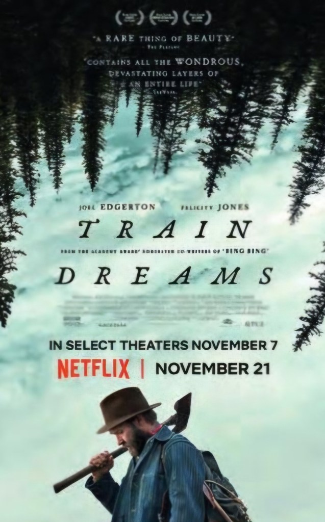 Netflix a mis en ligne le 21 novembre dernier sur sa plateforme, Train Dreams, un film qui se déroule au début du XXe siècle au cour des grands espaces sauvages du nord-ouest des Etats-Unis, le long des voies ferrées en construction.