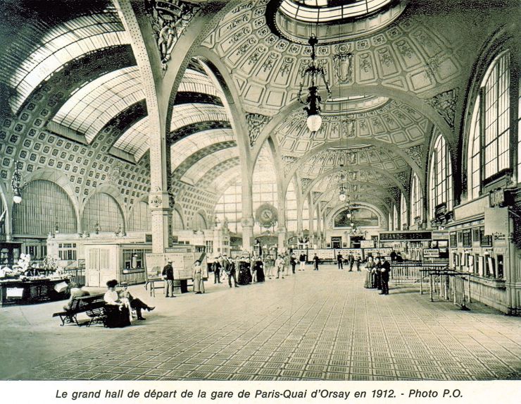 Conçue par Victor Laloux, avec Lucien Magne et Émile Bénard, la Gare d’Orsay est inaugurée en 1900. Elle se distingue par sa façade monumentale en pierre de style Beaux-Arts — un courant architectural prestigieux du Second Empire — et son impressionnante structure métallique couverte d’une immense verrière.