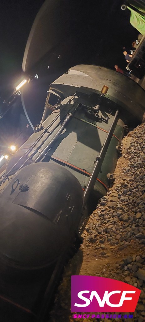 Originalement présentée “couchée” pour illustrer un acte de sabotage ferroviaire durant la Seconde Guerre mondiale, cette mise en scène a suscité des débats : elle permet une narration forte de l’histoire, mais pose des questions quant à l’impact à long terme de cette position sur la mécanique, car les machines à vapeur ne sont pas conçues pour rester sur le flanc durant de longues périodes.