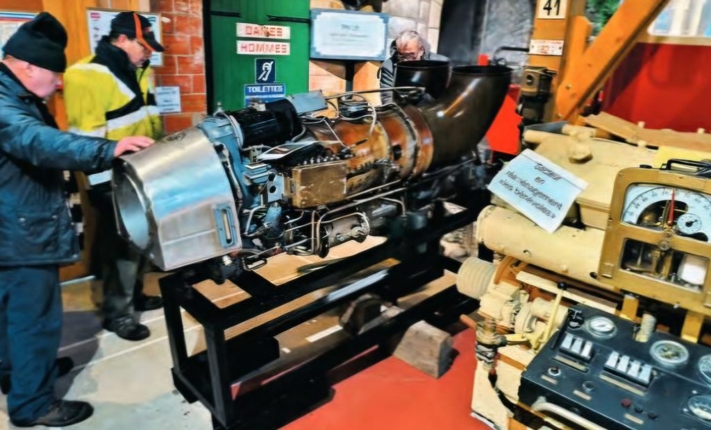 La motorisation exceptionnelle Turbomeca faisait des prodiges mais, hélas, consommait trop d’énergie fossile, surtout après le choc pétrolier de 1973, raconte Christian Pottier, président du Muséotrain. Le 29 novembre, les bénévoles ont installé la nouvelle arrivante dans le musée… À côté d’une autre pièce historique, le moteur ferroviaire Renault.