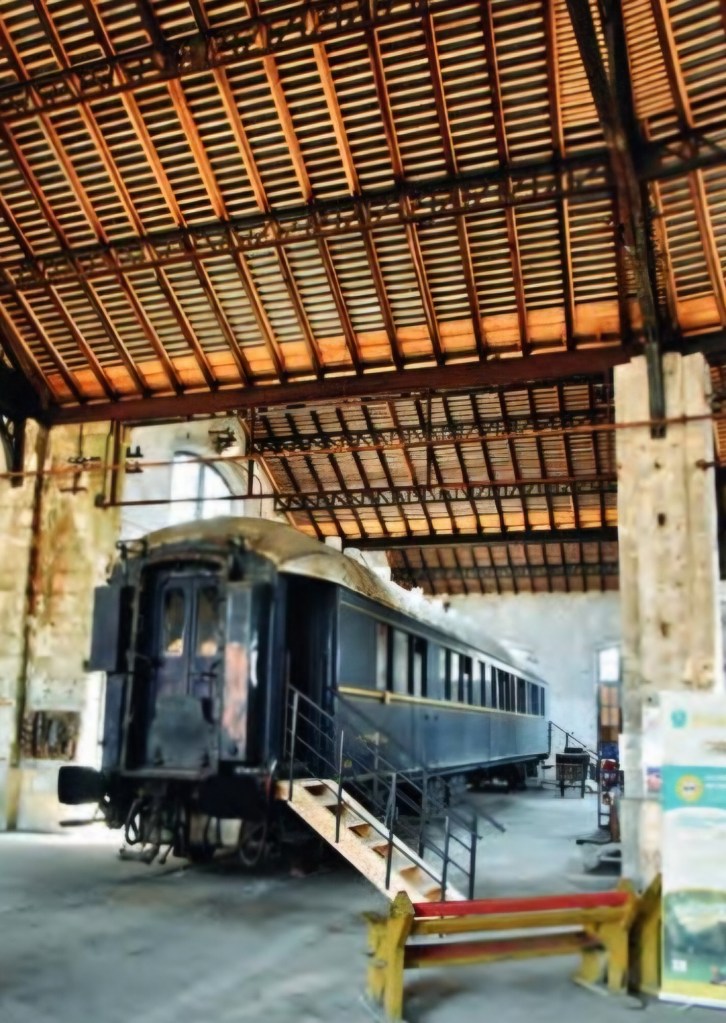 La rotonde abrite également un musée où- des objets et outils ferroviaires, témoins de ‘histoire de l’ancien dépot s du réseau de l’Etat. As droite:La voiture- lits de 1929.