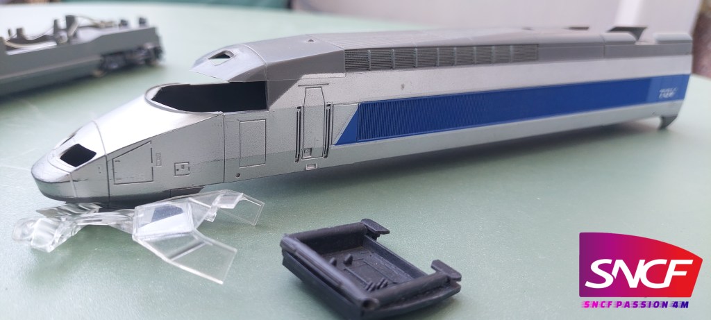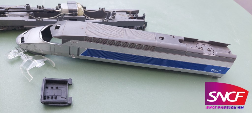 Comme promis voici la base de la motrice 325, aujourd’hui, démontage, ponçage, et préparation à la peinture, camouflage de la carrosserie.