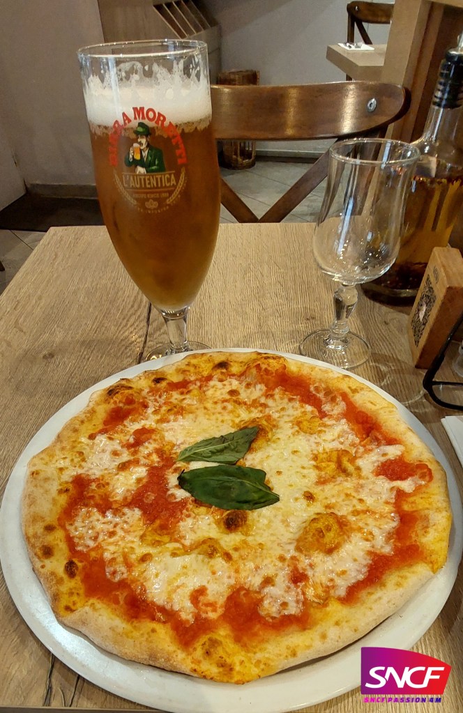 ma préférée, la margherita, simple, mais si bonne, avec une bonne bière italienne 😋