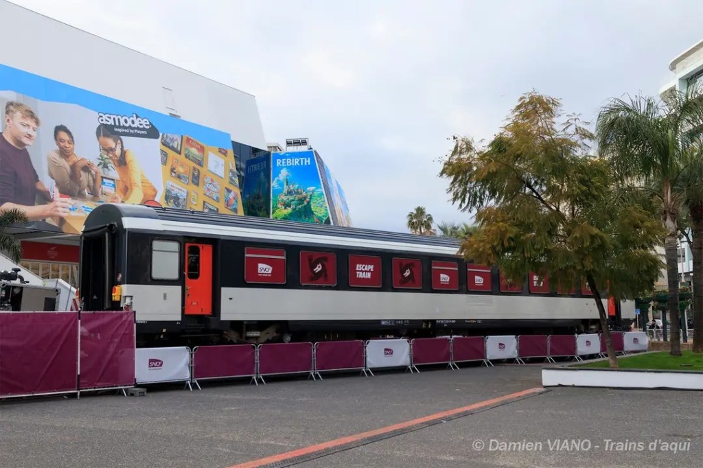 A cette occasion, une voiture Corail Bar Disco fraîchement repeinte en livrée d’origine a été acheminée depuis Sotteville-lès-Rouen jusqu’autriage de Cannes-Marchandises, dans le quartier deLa Bocca, le 19 février dernier. Elle a ensuite été acheminée de nuit en début de semaine par convoi exceptionnel, pour être déchargée sur le parvis du Palais.